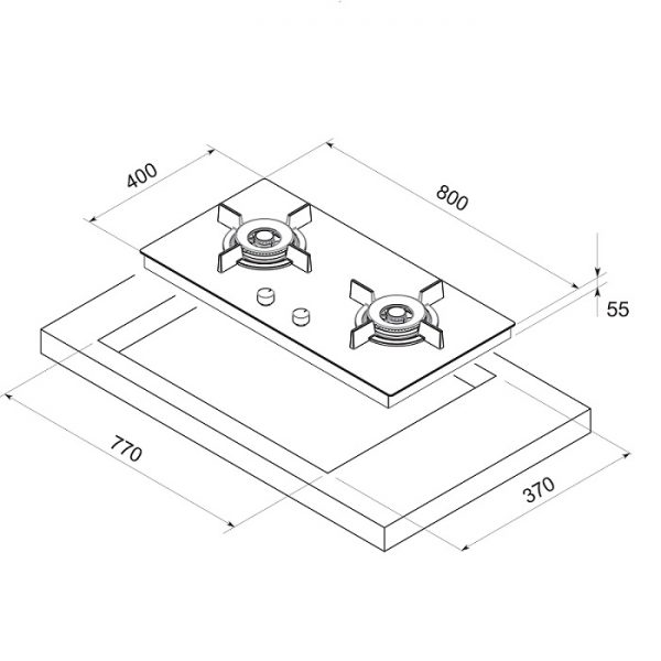 – Kích thước bếp: 800 x 400mm.