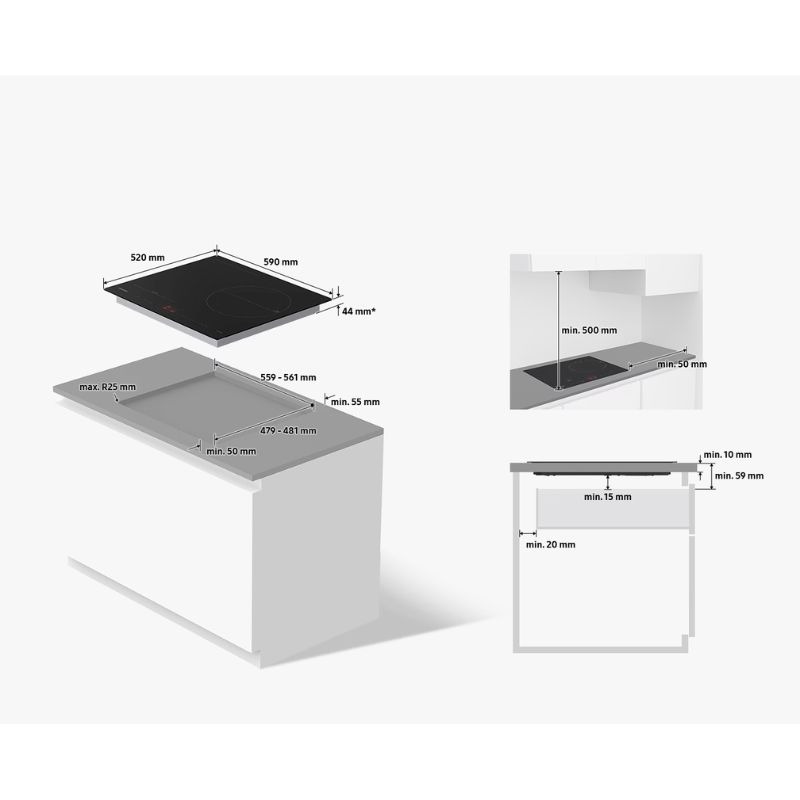 - Lắp đặt kiểu bếp âm và sử dụng theo đúng chỉ dẫn được nhà sản xuất cung cấp.