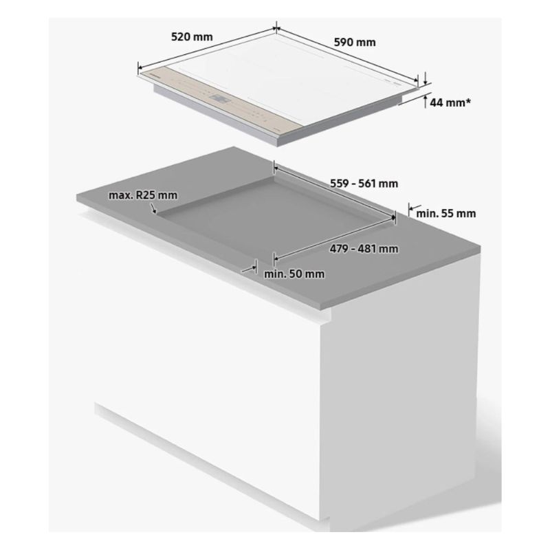 - Tổng công suất bếp từ Samsung đạt tới 7400W giúp rút ngắn thời gian chế biến món ăn.