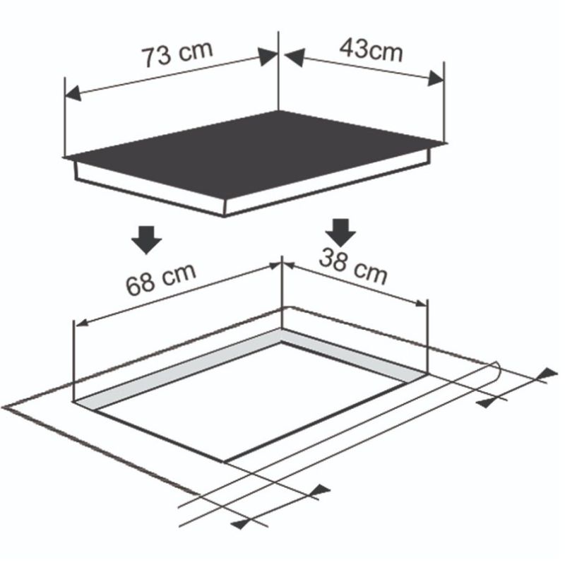 - Kích thước cắt đá: D680xR380xS30 mm