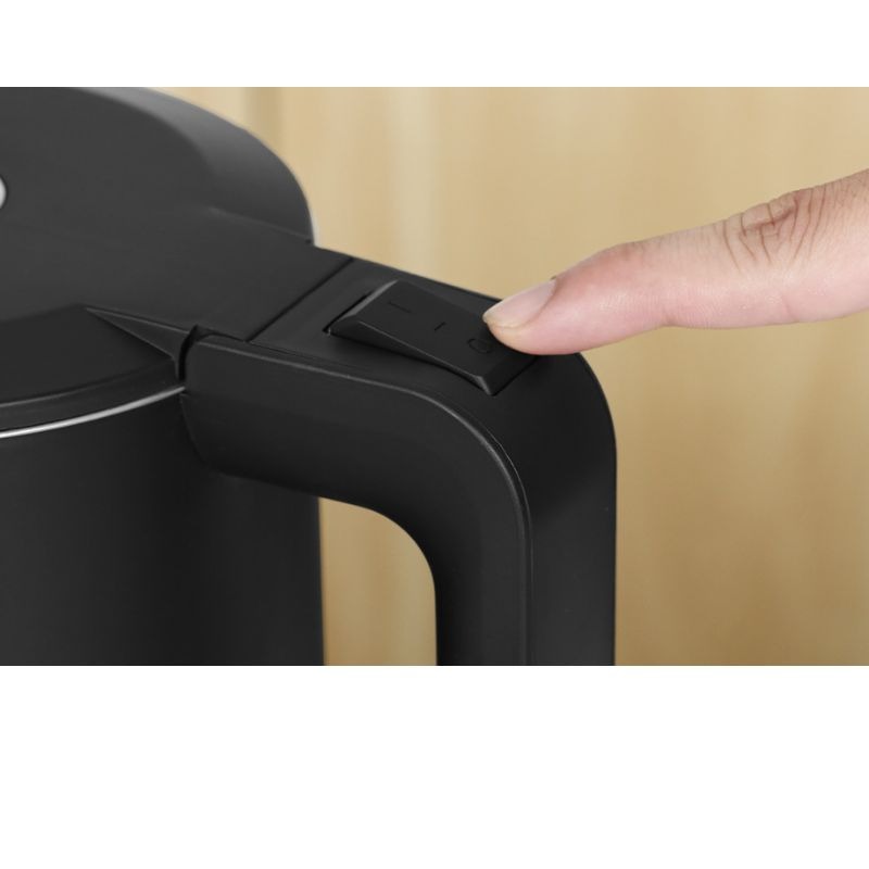 - Đun nước dễ dàng chỉ với 1 nút nhấn trên tay cầm, ngay cả người lớn tuổi cũng có thể sử dụng được. Có đèn LED báo hiệu trạng thái hoạt động của bình được đặt cách điệu ngay trên phần tay cầm.