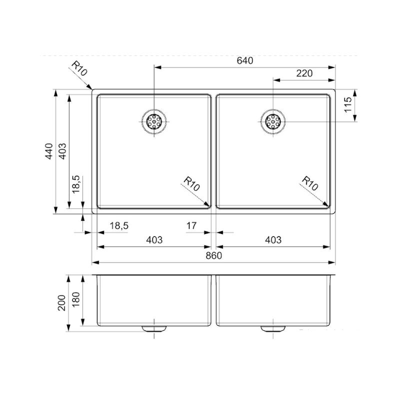 Thông số kỹ thuật của chậu rửa bát inox 2 hố Reginox NEW YORK HMH.R28254