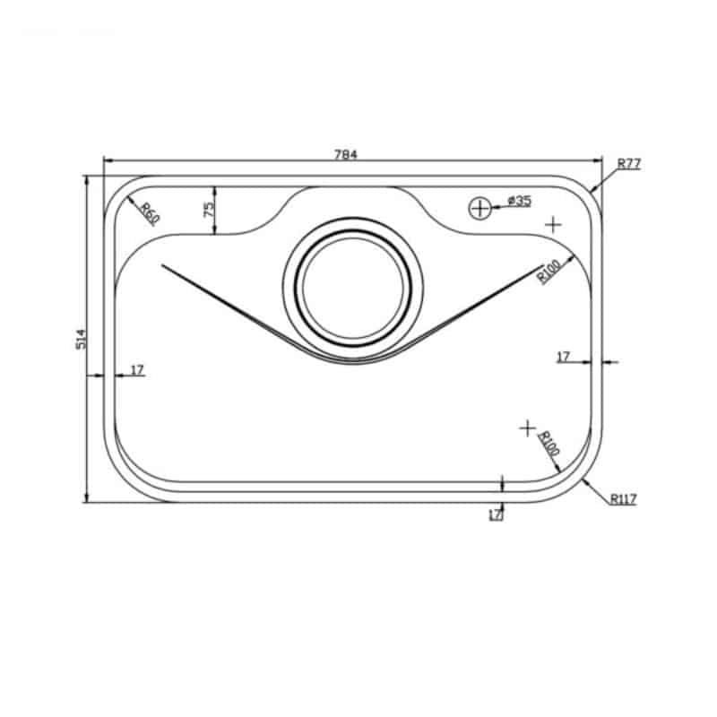 - Vệ sinh lòng chậu dễ dàng với góc lượn R100 mm