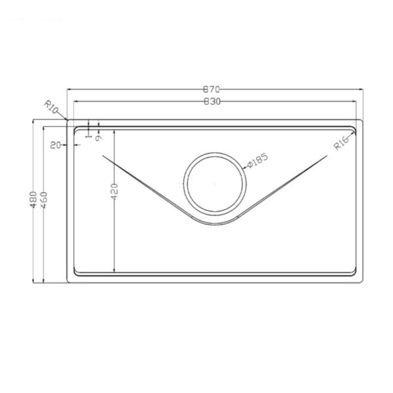 - Vệ sinh lòng chậu dễ dàng với góc lượn R16 mm