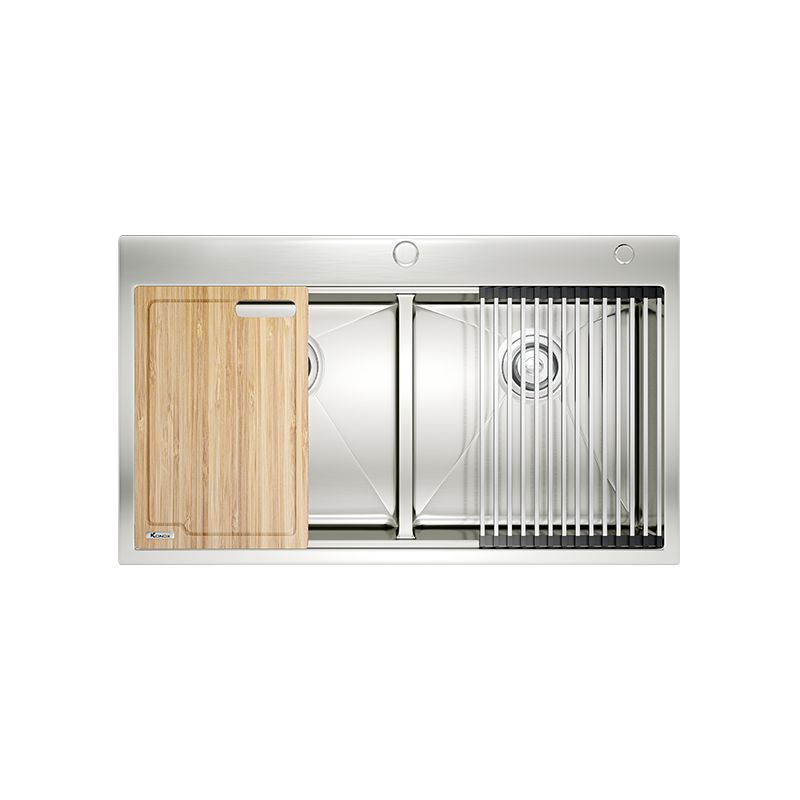 Workstation Series là dòng sản phẩm luôn chiếm trọn sự quan tâm bởi ngoài công năng tích hợp tuyệt vời, bộ sưu tập còn hướng đến thiết kế phô diễn. Chậu rửa bát Workstation Sink – Topmount Sink KN8850TD được tối ưu công năng nhờ thiết kế hạ bậc, tích hợp phụ kiện đi kèm mang tới trải nghiệm tuyệt vời trong thao tác làm bếp. Với bề ngang 880mm, chậu thích hợp với khu vực bàn bếp có diện tích tương đối rộng.