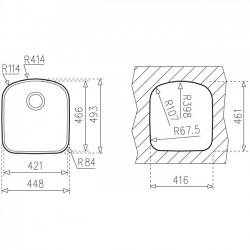 – Kích thước hộc rửa (Ø): 421 x 466 x 250 mm
