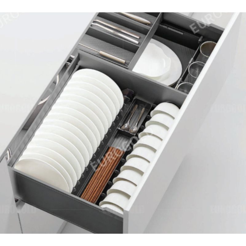 - Tích hợp ngăn kéo thông minh, tiện dụng: Chỉ cần một thao tác đơn giản là vít ốc bạn có thể lắp đặt thêm cánh kéo với mọi chất liệu (gỗ, nhôm,…) tùy theo sở thích của bạn. Trong tích tắc thì giá để bát đĩa của bạn có thể hô biến thành một ngăn kéo thật linh hoạt, gọn gàng, đẹp mắt và vô cùng đồng bộ, sang trọng.