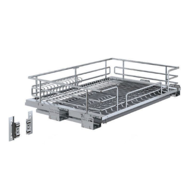 - Tích hợp ray trượt và giảm chấn giúp đóng mở dễ dàng, giảm tiếng ồn: Thiết kế ray trượt sẽ giúp bạn tiết kiệm được rất nhiều sức lực khi lấy và cất đồ. Chỉ cần kéo hoặc chạm nhẹ, giá xoong nồi đa năng Eurogold inox Oval tự động đẩy ra và việc lấy đồ của bạn trở nên dễ dàng hơn. Hệ thống giảm chấn giúp ngăn kéo tự khít vào khi đẩy nhẹ, giảm chấn động. Điều này giúp tránh được hiện tượng, xoong nồi bị xô đẩy, va chạm vào nhau khi kéo, mở tủ.