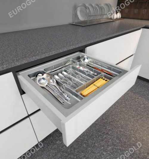- Thiết kế kiểu chia ô thông minh giúp bạn sắp xếp gọn gàng, ngăn nắp mọi vật dụng nhà bếp một cách khoa học, hợp lý như thìa, nĩa, đũa, muôi, muỗng, kéo…