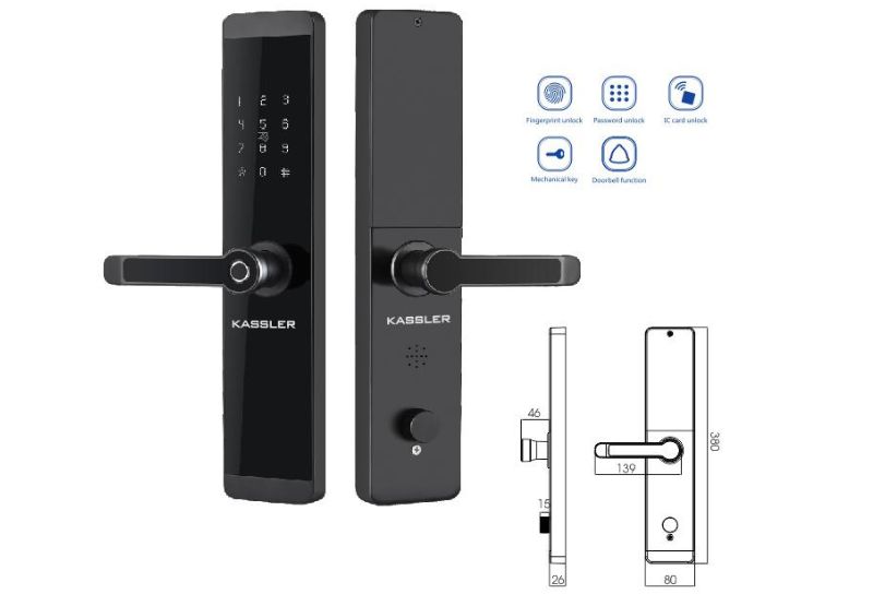 – Kích thước thân khóa ngoài: R 80 x C 380 x D 26 mm