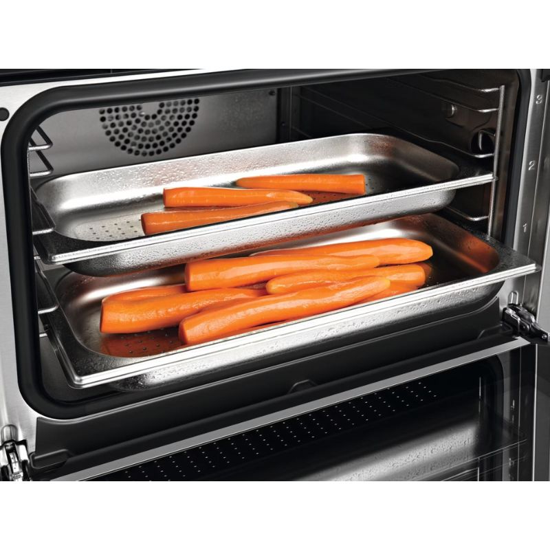 - Kiểm soát vị giác: Chức năng làm nguội nhanh tự động ngăn không cho thức ăn tiếp tục nấu và có thể giữ ấm thức ăn nếu muốn. Dừng quá trình nấu để có kết quả hoàn hảo: khoang lò có thể được làm nguội hoàn toàn sau quá trình nấu để món ăn không tiếp tục nấu trong lò. Hoặc bạn có thể giữ thức ăn ở nhiệt độ phục vụ thật dễ dàng. Một động cơ thực hiện điều này bằng cách mở và đóng cửa. Điều này đảm bảo rằng các món ăn của bạn được nấu ở mức độ nấu hoàn hảo và không cần nấu thêm nữa – ngay cả khi bạn không có mặt ở đó để lấy chúng ra khỏi lò ngay.