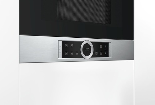 - Hệ thống bảng điều khiển của lò vi sóng Bosch BFL634GS1 là điều khiển bằng cảm ứng phía bên dưới với màn hình hiện thị đồng hồ điện tử dễ dàng cho việc lựa chọn mức công suất vi sóng, các chức năng tự động, khối lượng sản phẩm, lập lịch thời gian nấu nướng dễ dàng và chính xác nhất.