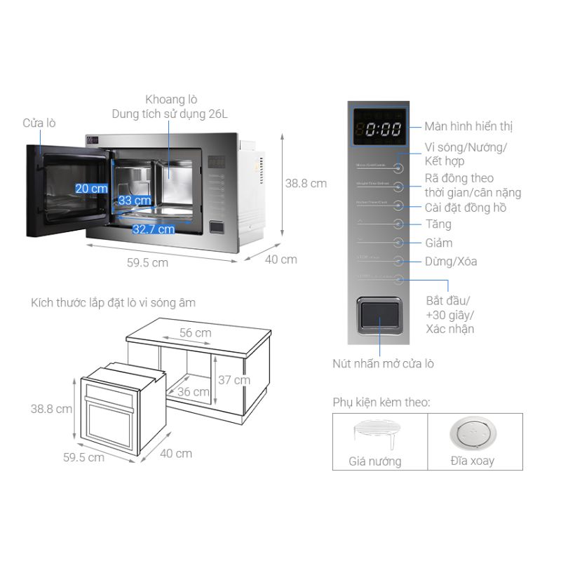 - Kiểu máy: Lò vi sóng âm tủ