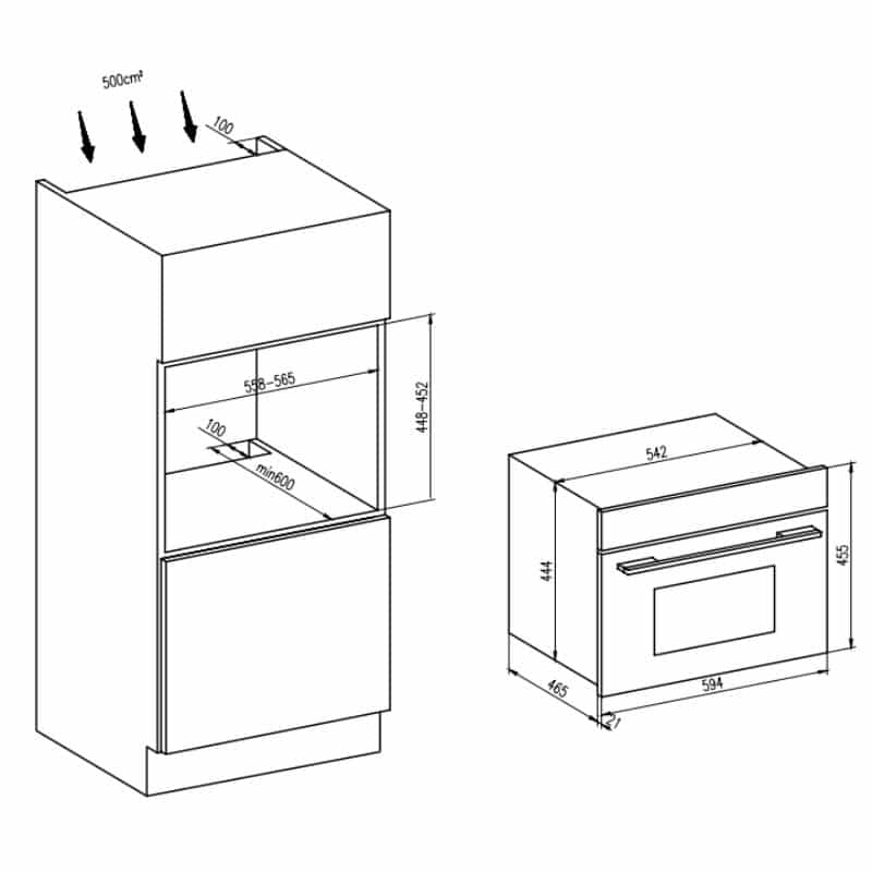 - Kích thước hộc tủ: (558-565)R x (448-452)C x min 600S mm