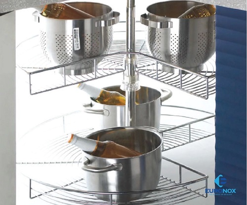 Mâm xoay góc ¾ là một phụ kiện giá góc giúp tối ưu không gian góc chết của tủ bếp. Giá có 2 tầng mỗi tầng có thiết kế là ¾ hình tròn nên rất thuận tiện đặt để hay lấy đồ đạc. Tìm hiểu rõ hơn sản phẩm này qua thông số bên dưới nhé!