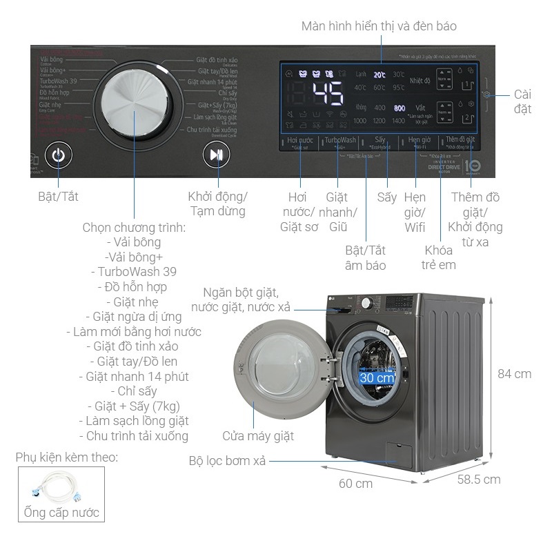 Máy giặt sấy LG giặt 11 kg – sấy 7 kg FV1411H3BA