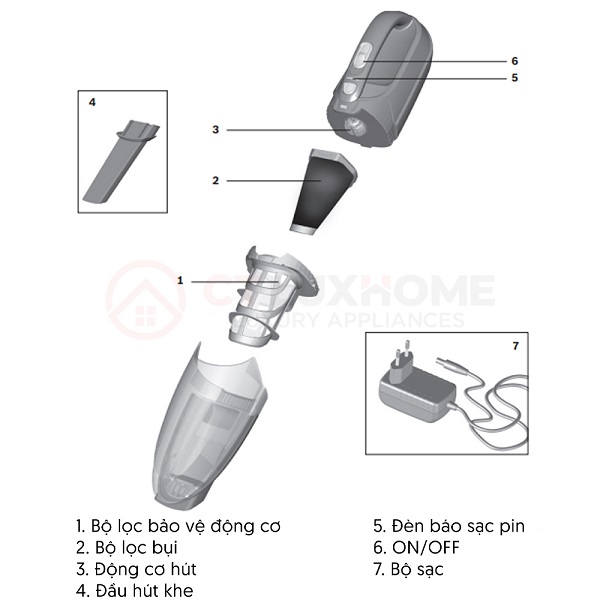 - Máy hút bụi di chuyển linh động không giới hạn khoảng cách, sử dụng liên tục trong 12 phút khi sạc đầy. Sạc đầy pin từ 12 – 16 giờ.
