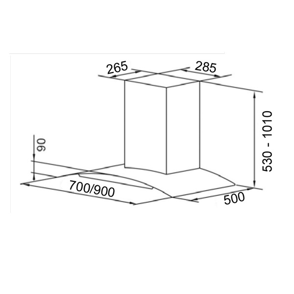 – Kích thước hút mùi (dài x sâu x cao): 900 x 390 x 580mm