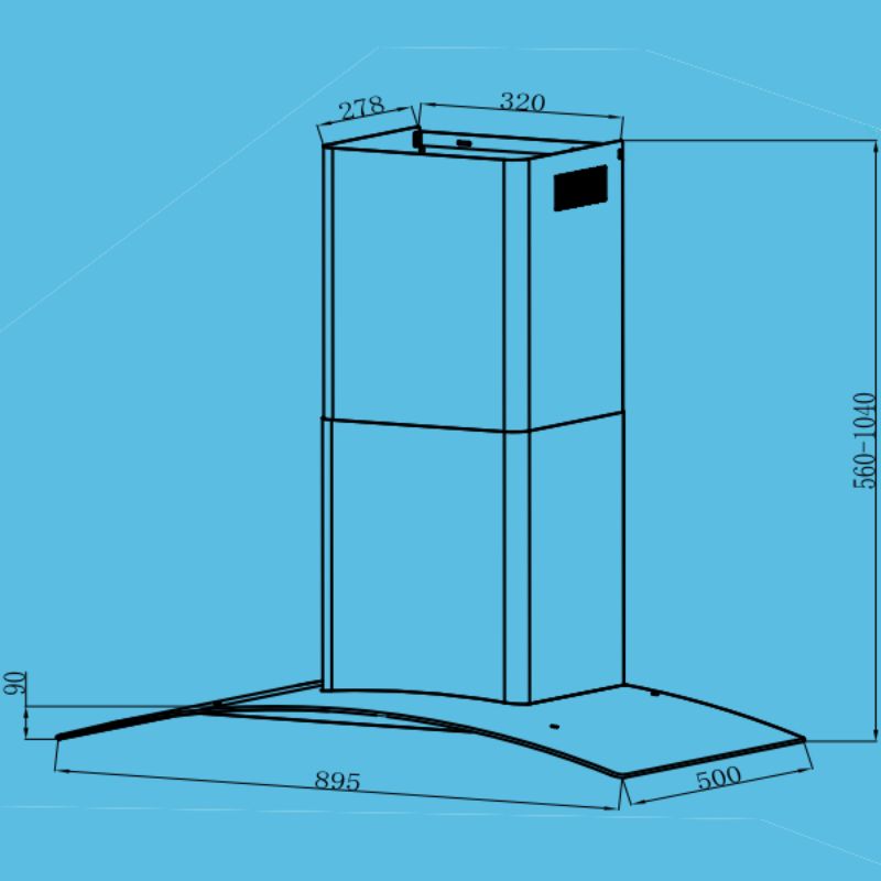 - Kích thước ống thoát từ 540 mm đến 1020 mm và kích thước khoét tủ 278 x 320 mm