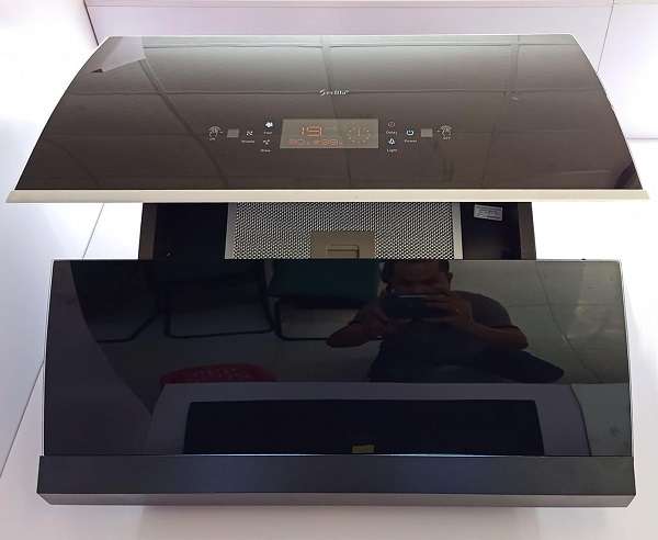 – Máy hút mùi gắn tường, kiểu dáng kính vát nghiêng cong