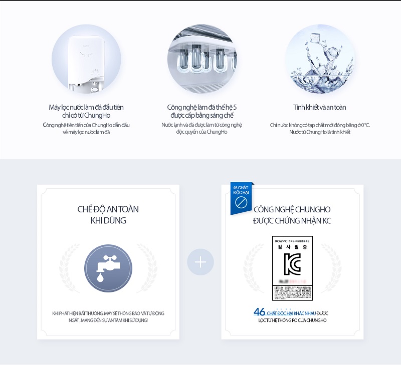 – Công nghệ làm sạch thông minh cho nước tươi mới: Luôn yên tâm vì nước được giữ sạch và an toàn khi sử dụng.