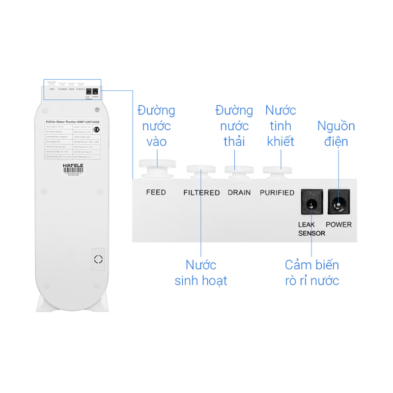 Máy lọc nước RO Hafele HWP-UNT400D 3 lõi thiết kế để bàn hoặc lắp âm tiết kiệm không gian, điều khiển cảm ứng hiện đại, sở hữu nhiều tiện ích hữu dụng: tự động sục rửa màng RO, ngừng hoạt động khi áp lực nước thấp,… cung cấp nguồn nước tinh khiết cho gia đình.