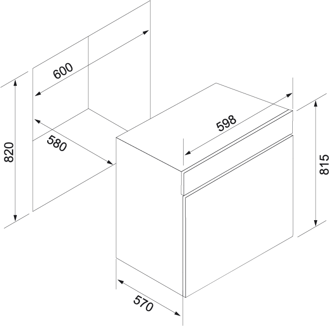 - Kích thước khoét tủ: W600 x D580 x H820 mm.