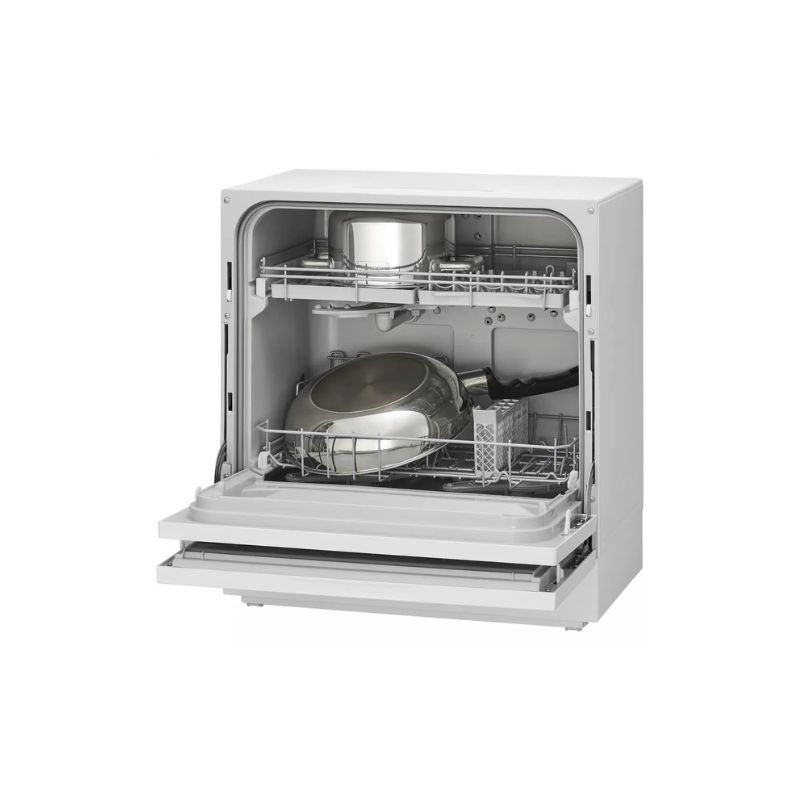 - Thiết kế nhỏ gọn và hiện đại Máy rửa chén Panasonic NP-TH1WEVN có thiết kế hiện đại, kết hợp với màu trắng trang nhã, giúp làm tăng tính thẩm mỹ và tạo điểm nhấn cho mọi không gian nội thất của mỗi gia đình. Kích thước của máy khá nhỏ gọn ngang 55cm – sâu 34.4cm – cao 59.8cm, giúp tiết kiệm không gian trong nhà bếp của bạn. Cùng với đó, phần cửa của sản phẩm được thiết kế cửa 2 tầng bởi Panasonic giúp tới giảm diện tích phía trước để không cản trở lối đi.