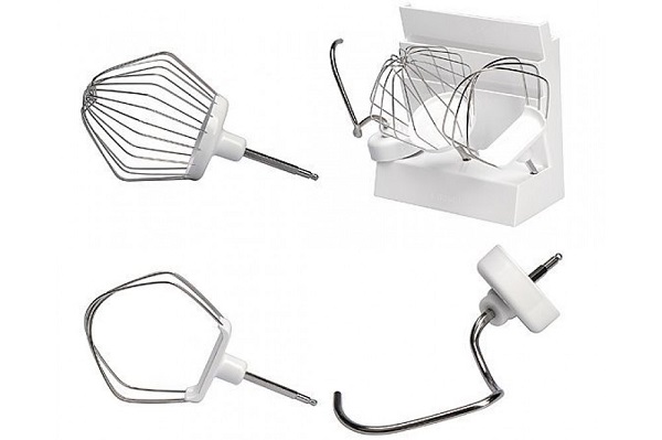 - Máy được trang bị 3 que đánh: 1 dùng để đánh trứng, 1 que dùng để trộn hỗn hợp, 1 móc câu dùng để nhào bột. Cả 3 đều được làm bàng thép không gỉ cao cấp, an toàn tuyệt đối cho người tiêu dùng và mang lại sự chắc chắn cho sản phẩm.