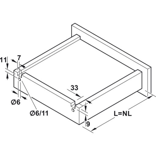 - Các kích thước: Chiều rộng hộc tủ tối đa = chiều rộng tủ lọt lòng – 40 mm + 2x độ dày thành hộc T = 16mm