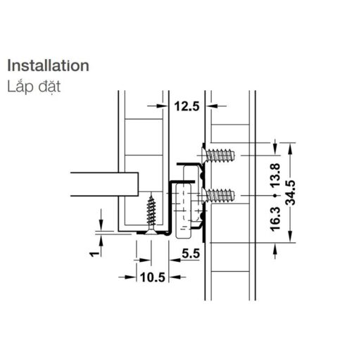 - Lắp đặt : ở mặt bên hộc tủ
