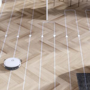 - Bạn chỉ cần tháo hoặc lắp đế khăn lau để chuyển đổi chế độ hút quét lau hoặc chỉ hút quét. Một máy bơm nước được điều khiển để đảm bảo khăn lau luôn được cung cấp một lượng nước vừa đủ để làm sạch.