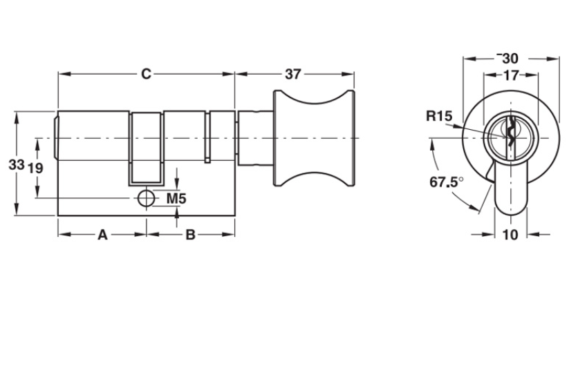 Thông số kĩ thuật của ruột khóa 1 đầu chìa, 1 đầu vặn đầu Hafele 916.08.316
