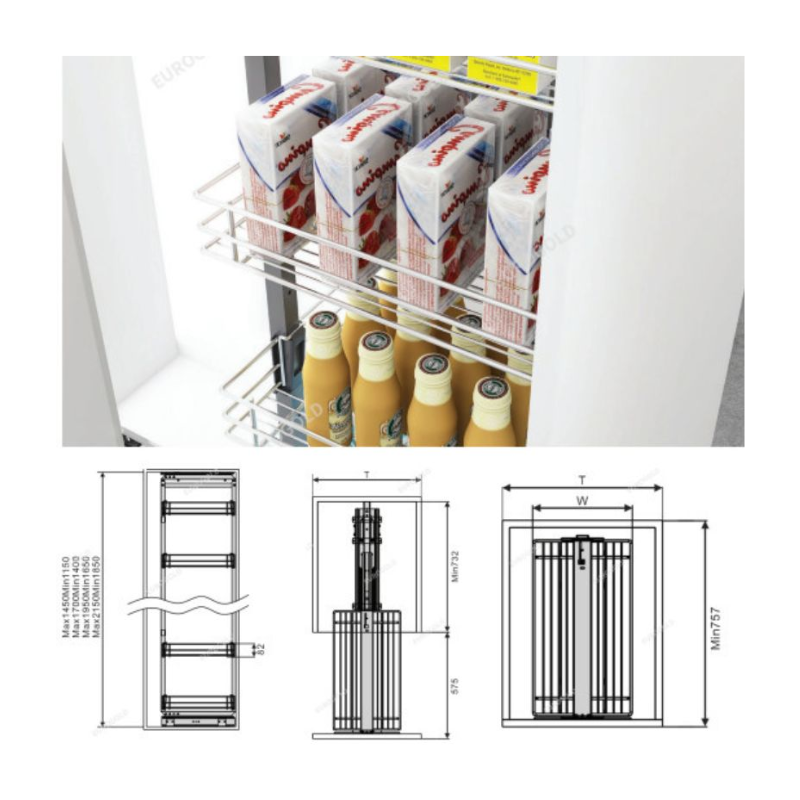 - Sử dụng dễ dàng: Khi cần lưu trữ thực phẩm, người dùng chỉ việc mở cửa tủ ra và cho thực phẩm vào các kệ tương ứng. Ngoài ra, tủ kho nan 6 tầng cánh rút EG90640S còn có khung giá đỡ hệ tủ bắt kết hợp với cánh tủ chắc chắn, giúp kéo cánh cùng đồ dùng nhẹ nhàng và tiện nghi. tích hợp bộ ray giảm chấn êm ái nên bạn không cần phải lo lắng tình trạng kéo ra đẩy vào khi sử dụng gây ra tiếng ồn ảnh hưởng đến các hoạt động khác của gia đình.