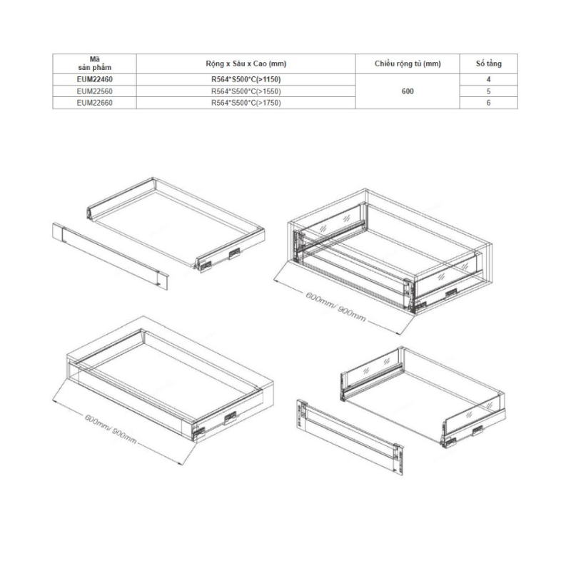 Kích thước tủ kho ngăn kéo độc lập Eurogold EUM22660
