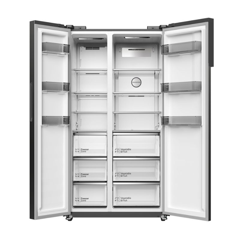 - Tủ lạnh Hitachi side by side sang trọng, nhiều ngăn – kệ – hộc lưu trữ thực phẩm
