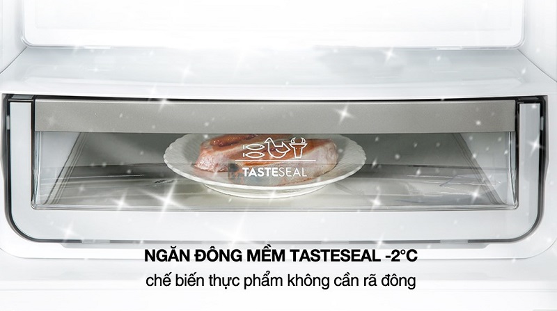 + Ngăn đông mềm TasteSeal bảo quản thực phẩm ở chuẩn -2°C trong suốt 7 ngày mà không cần rã đông trước khi chế biến.