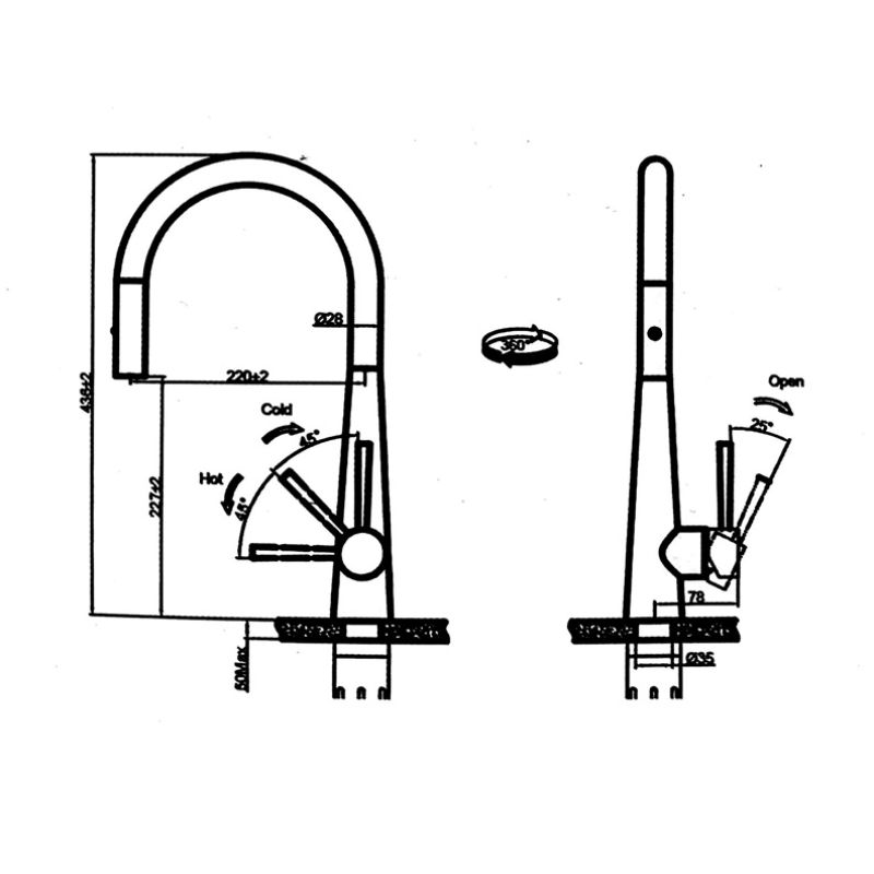 - Chất liệu Inox SS304: Chất liệu này có đặc tính chống ăn mòn và chống gỉ tuyệt vời, giúp bảo đảm độ bền và tuổi thọ của vòi trong môi trường ẩm ướt như bếp.