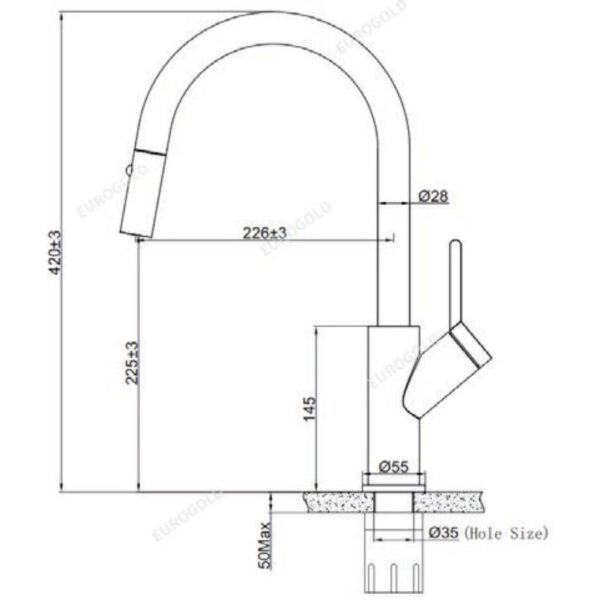 Kích Thước Vòi rửa bát nóng lạnh Eurogold EUF333DR có dây rút