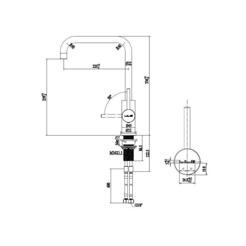 Thông số kỹ thuật của vòi rửa bát nóng lạnh Reginox Crystal R30516